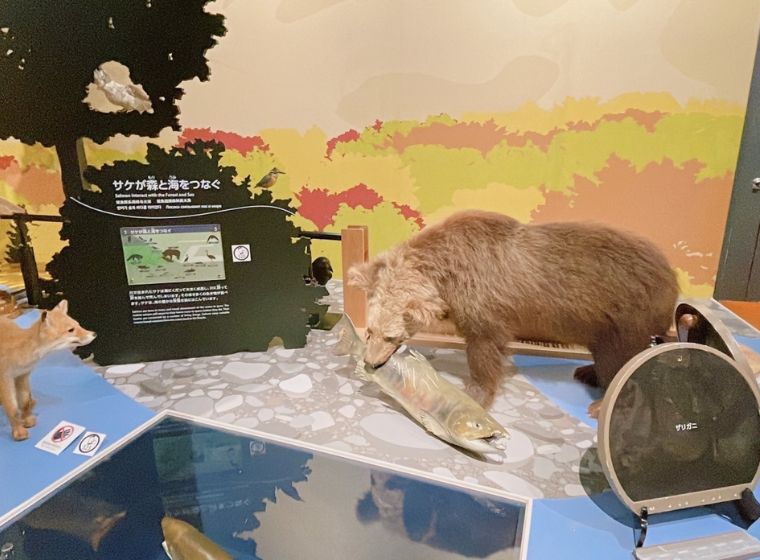 「サケが森と海をつなぐ」というテーマで、北海道の自然の生態系がわかりやすく展示されています。